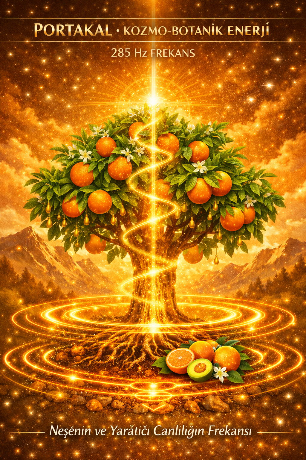 Bir portakalı eline al ve avucunda ısıt. Kabuğunu yavaş yavaş soy — kokusu yayıldıkça üç kez 'iyi geldim' de. Tabağa nazikçe yerleştir.