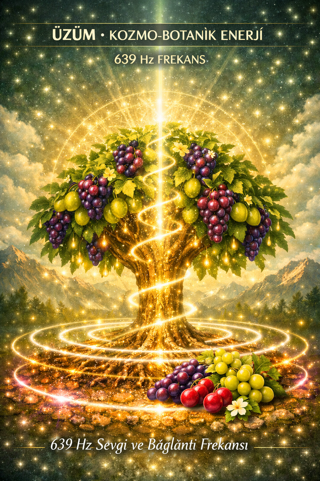 Bir salkım üzümü ortaya koy. Üç tane al, üç tanesine üç dilek emanet et: 'sevgi, sağlık, sabır'. Yedinci tanede konuşma — yalnızca kabuğunu hisset.